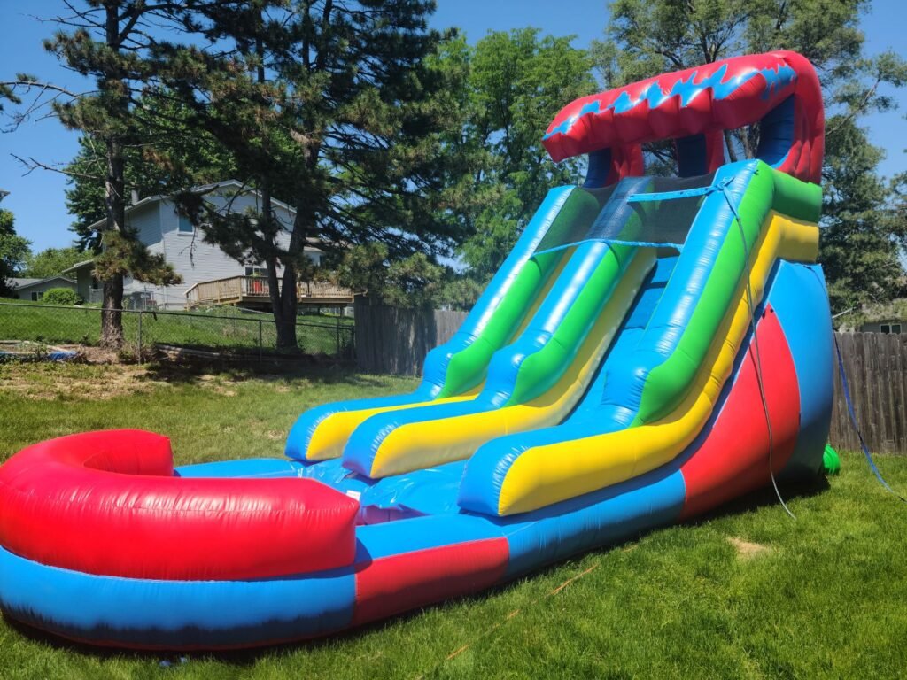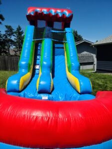 Who says having fun in the Summer has to be expensive? Our 15’H Vibrant Waterslide is a perfect way to keep cool without breaking the budget. This waterslide is designed for kids aged 4 – 16 (up to 180lbs per rider).